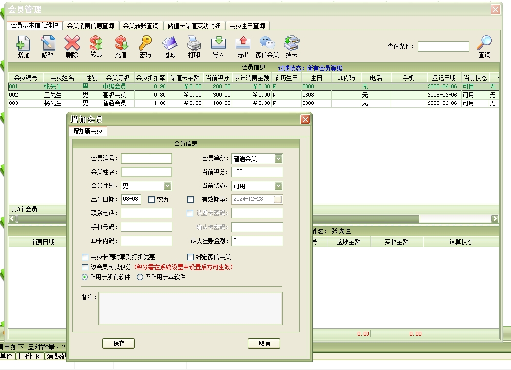 会员设置:会员是本店的VIP客户、签单客户、团会客户、合约客户、其他客户的统称。可设置会员等级(例如:高级会员、中级会员、普通会员等)还可为每种会员等级设置打折比例。