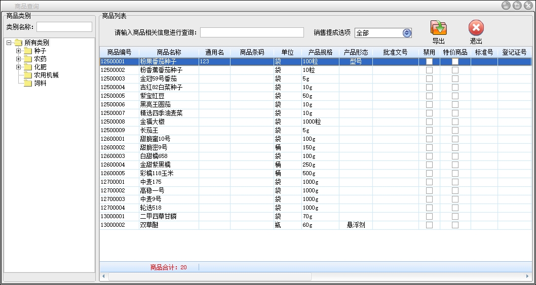 1. 商品信息管理:可以对农资的基本信息进行录入、修改和删除,包括药品名称、规格、生产厂家、批准文号等。