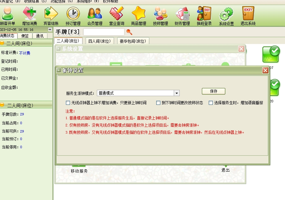 第八:足疗软件具有技师管理功能,包括技师排班、技师提成设置、技师提成查询、定时提醒。